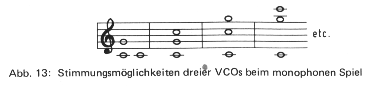 Würde man drei VCOs zu einem Dreiklang ,c-e-g' stimmen, wenn man auf