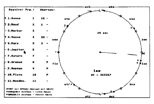 Abbildung 4: Die "Uhr" ist mit dem Horoskopbild (Beispiel 3) identisch (AC=Ascendent = östlicher Schnittpunkt Ekliptik/Horizont)