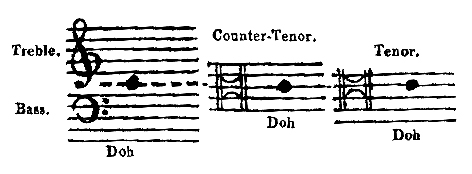 Ein Schlüssel ist ein Zeichen, das zeigt, welche Linien und welche Zwischenräume aus der Tonstufentafel [Table of Degrees] für die Leiternoten gebraucht werden. Es gibt vier Schlüssel: