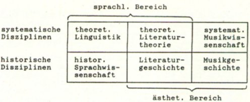 ![]() Abb. 10: Gliederung der sprachlichen und musikalischen Wissenschaftsdisziplinen Damit wird klar, daß musikalische Gebilde immer, sprachliche dagegen nur manchmal Gegenstand der Ästhetik sind. Für das weitere Vorgehen bestehen nun zwei Möglichkeiten. Zur Beschreibung musikalischer Gebilde könnte die in ihrer Funktion der theoretischen Linguistik am nächsten kommende Musiktheorie herangezogen werden. Ziel wäre ein Vergleich musiktheoretisch und linguistisch beschriebener Strukturen sowie das Aufzeigen von methodischen Parallelen. Dieses Vorgehen ist aber insofern unelegant, als es mindestens ebenso viele theoretische Beschreibungsmethoden wie musikalische Stile gibt, wodurch sich ein Vergleich musikalischer mit sprachlichen Strukturen schwierig gestaltet. Mit anderen Worten: Führt man sich noch einmal die drei Arten sprachlicher Strukturbildung (s. Abb. 4, S. 15) vor Augen, die in der Linguistik unterschieden werden und die grundsätzlich auch auf die Musik übertragen werden können, so wird deutlich, daß sich die Musikwissenschaft fast ausschließlich mit den letzten beiden Arten der Strukturbildung befaßt hat. Jedoch: "Die phylogenetisch entstandenen Grundlagen möglicher musikalischer Systeme müssen durch musikalische Universalien (meine Hervorhebung, N.K.) beschreibbar sein. Auf diesen müssen die ontogenetisch zu erwerbenden musikalischen Codes beruhen, aus denen sich die Struktur der einzelnen musikalischen Gebilde ergibt." (Bierwisch 1978, S. 34) Die genannten Universalien werden erst seit ein paar Jahren im Rahmen der Kognitiven Musikpsychologie diskutiert, doch ein gemeinsamer Nenner ist noch nicht auszumachen.