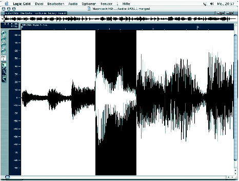 zeigt eine komplette Audiospur oder einen selektierten Ausschnitt hieraus als