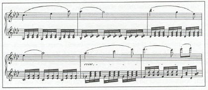 In Zusammenhang mit Luciens sozialer Einordnung ist das erste Zitat einer Sonate Beethovens von Bedeutung. Als Jean-Bernard Lucien zum ersten Mal zu dem jüdischen Schneider Horn bringt, ertönen bereits im Garten entfernt die ersten Takte von Beethovens im Jahre 1821 entstandener Klaviersonate Nr. 31 As-Dur op. 110, I. Satz (vgl. Abbildung 9.2).93