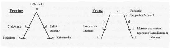 Aus der Schematik von Franz leitet Kuchenbuch eine Graphik ab, in der er sowohl Schwerpunkte der Verlaufsform der Akte der Komödie als auch der Tragödie kennzeichnet (vgl. Abbildung 3.2).3
