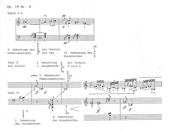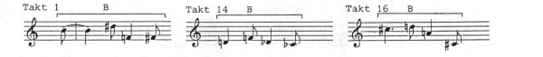 Ein weiterer und für Berg bedeutender Aspekt, der dem Begriff der "Grundgestalt" in den Analysen zugewiesen wird, ist der des Rhythmus: als wesentlichen Teil der "Grundgestalt" von Opus 19 versteht Berg das mit eckigen Klammern bezeichnete rhythmische Motiv B (vgl. Takte 1 und 16).