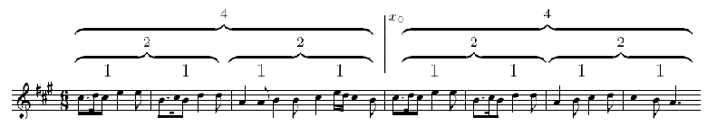 Die Aufteilung von Melodien oder Rhythmen in gleich große Teile wird bei Riemann und