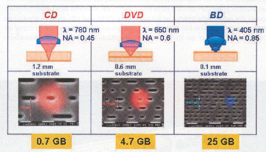 blau-violetten Laser benutzen. Ein blauer Laser besitzt im Gegensatz zum roten Laser