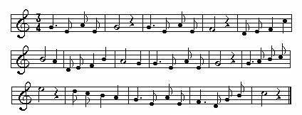 Diktat: der Lehrer sang Zwei- oder Dreiton-Phrasen auf "la" und die Klasse antwortete mit Sol