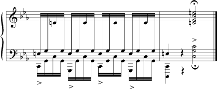 Takte lang fast ohne Unterbrechung im selben Register durchgehalten, wobei sie am