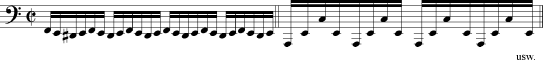 ist kurz vor der Rückkehr einer genauen parametrischen Wiederholung von T. 5, und an T. 92 schließt sich direkt die letzte Präsentation des Hauptthemas an – verleiht ihnen eine zusätzliche strukturelle Bedeutung. In den beiden ersten Takten der Etüde wird das Hauptthema des Stücks vorgestellt. Vernachlässigt man jedoch den Rhythmus, so zeigt sich dieser melodische ›Grundgedanke‹ als sehr wenig charakteristisch. Er besteht aus einer sechsmaligen Wiederholung des E, unterbrochen von einer Halbtonbewegung zum F hin und zurück, sowie einem ähnlichen Terzsprung E–C–E (Abbildung 4.21).