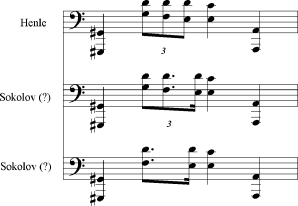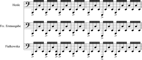 handelt (Abbildung 5.3). Da es sich bei der Einspielung von Sokolov um eine Live-Aufnahme handelt, ist es jedoch auf jeden Fall gut möglich, dass diese Abweichung nur einem kleinen Gedächtnisschwund des Pianisten zu verdanken ist, und dass man ihr aus diesem Grund auch keine allzu große Bedeutung schenken sollte.