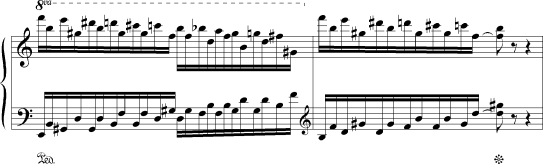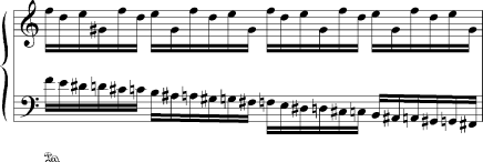 absteigende chromatische Tonleiter der linken Hand mit einem durchgehaltenen Pedal