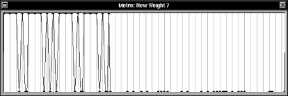 Stellt man sich die im unteren Bild abgebildete Kurve z. B. als einen Verlauf von Dynamikschwankungen vor, so wird deutlich, dass das obere Bild nicht ermöglicht, die tatsächliche Wirkung des Gewichts auf die Interpretation vorherzusagen: Die starken decrescendi und crescendi können in der Ansicht der MetroRubette unmöglich |