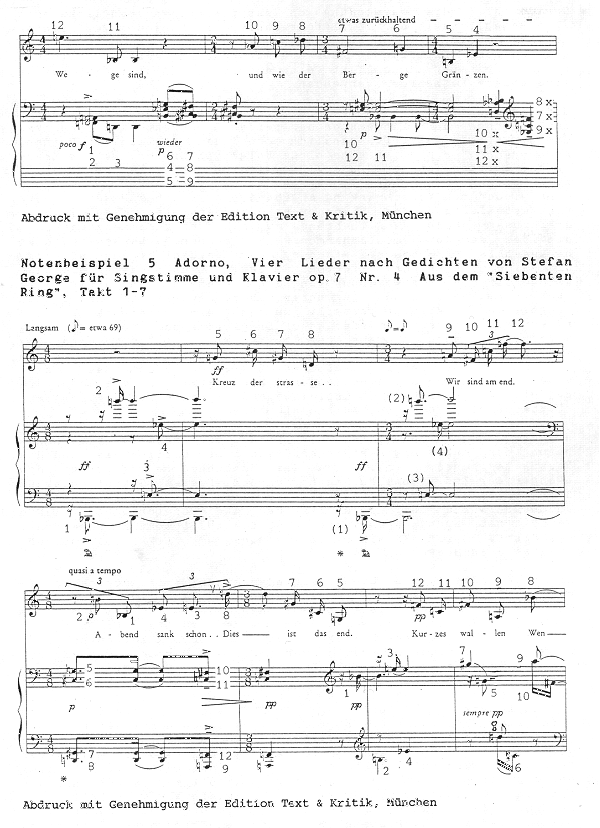 Notenbeispiel 5 Adorno, Vier Lieder nach Gedichten von Stefan George für Singstimme und Klavier op.7 Nr. 4 Aus dem "Siebenten Ring", Takt 1-7