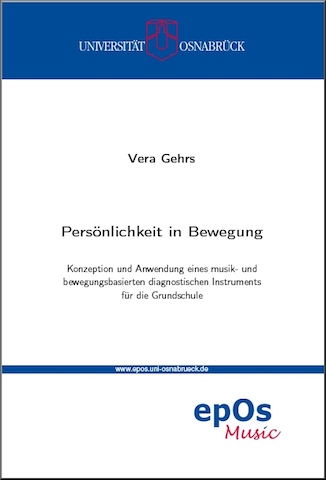 | | |  | Gehrs, VeraPersönlichkeit in BewegungKonzeption und Anwendung eines musik- und bewegungsbasierten diagnostischen Instruments für die Grundschule epOs-Music, 507 Seiten, zahlreiche, z.T. farbige Grafiken und Tabellen Bd. 2 der Reihe Beiträge zur empirischen Musikforschung, hrsg. von Christoph Louven Osnabrück 2016ISBN 978-3-940255-66-2 (Buch)ISBN 978-3-940255-67-9 (CD-ROM) | |