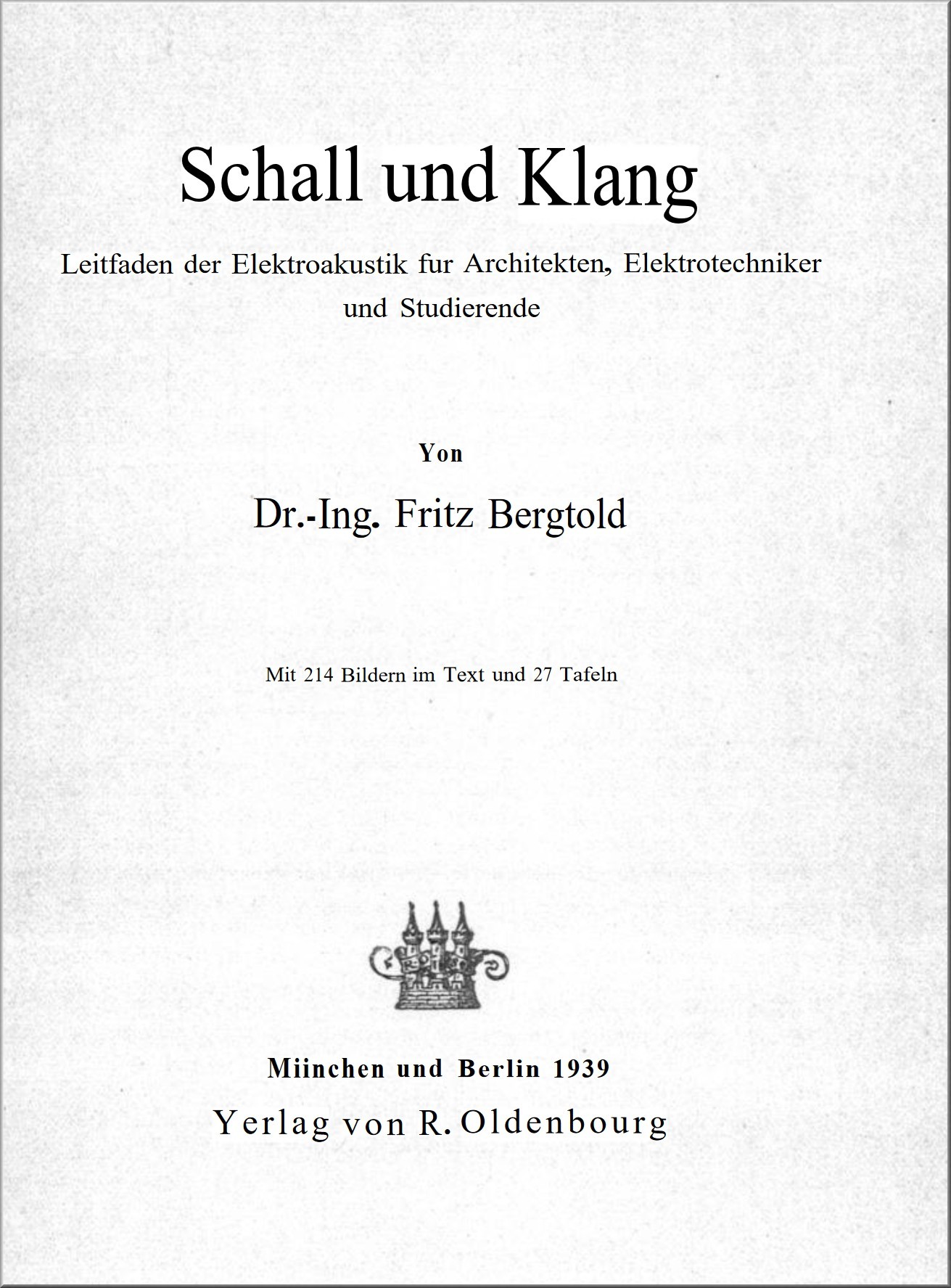 | | |  | Bergtold, FritzSchall und KlangLeitfaden der Elektroakustik fur Architekten, Elektrotechniker und Studierende R. Oldenbourg, 172 Seiten, Faksimile-Version, zahlreiche Abbildungen, Diagramme, historische S/W-Photos aus der NS-Zeit Der Band erscheint in der von Bernd Enders und Christoph Reuter zusammengestellten Sammlung "Historische Werke der System(at)ischen Musikwissenschaft."